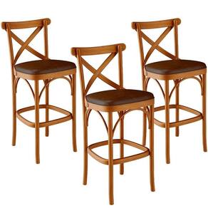 Kit 03 Banquetas Altas Cozinha Bancada Bar Sala Jantar Estofada ávila L02 Couríssimo Marrom - Lyam