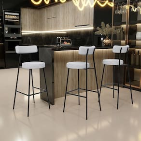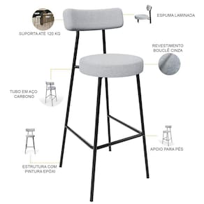 Amplamente moderna, dispondo de muito realce e design singular, O Kit 03 Banquetas Altas Bar Cozinha Sala De Jantar Estrutura Em Aço Milão L02 Bouclê Cinza - Lyam Decor vem com a personalidade e elegância que sua decoração merece! Estruturada em aço carbono, contrasta lindamente com o encosto e assento estofados, cabe mencionar ainda seu revestimento em Bouclê, é confeccionada por materiais de excelente qualidade, extremamente resistentes e aconchegantes.