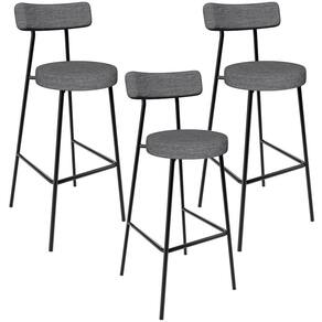 Amplamente moderna, dispondo de muito realce e design singular, O Kit 03 Banquetas Altas Bar Cozinha Sala De Jantar Estrutura Em Aço Milão L02 Linho Cinza Escuro - Lyam Decor vem com a personalidade e elegância que sua decoração merece! Estruturada em aço carbono, contrasta lindamente com o encosto e assento estofados, cabe mencionar ainda seu revestimento em Linho, é confeccionada por materiais de excelente qualidade, extremamente resistentes e aconchegantes. Possui altura ideal, garantindo o encaixe perfeito no ambiente, otimizando seu espaço e promovendo máximo conforto. Pode ser disposta em bancada, cozinha americana, área gourmet ou home bar, as possibilidades são infinitas e as combinações ficarão perfeitas. Adquira já a sua!!