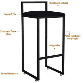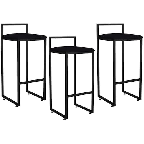 Kit 03 Banquetas Altas Para Cozinha Sala De Jantar Hanna L02 Preto Suede Preto - Lyam Decor O seu sonho é ter uma cozinha integrada? Uma banqueta pode ser fator determinante para ajudar nesta tarefa, principalmente se você contar com o modelo Kit 03 Banquetas Altas Para Cozinha Sala de Jantar Hanna Preto Suede Preto - Lyam Decor. Ideal para quem deseja montar uma cozinha americana ou agregar valor à sua área gourmet, o modelo possui design slim que é super apropriado para apartamentos ou para quem tem uma cozinha compacta. Outro ponto positivo é que este modelo não possui braços, sendo assim ocupa menos espaço e torna melhor para circulação. Ah, também possui apoio para os pés, elemento fundamental para a ergonomia e conforto. As opções de uso são infinitas, seja para um living, recepção, hall de entrada, sala de jantar, área gourmet ou ambiente corporativo. Para ter um espaço vital procure a distância mínima de 50 cm entre as banquetas. Desta forma a organização ficará harmônica e muito confortável para utilização. Dimensões do produto (A x L x P) 81 x 35 x 36 cm Altura do assento ao chão: 66 cm Características: Estrutura de Ferro com espessura de 20mm. Acabamento em pintura eletrostática cor Preto. Estrutura do assento em Madeira de Eucalipto. Assento fixo com espuma certificada D-23. Revestimento em Suede. Sapatas Niveladoras. Peso suportado: Até 150 kg. - Por se tratar de estofado as medidas podem ter uma pequena variação de até 3 cm. - A tonalidade do produto real poderá ter ligeira variação devido o lote de tecidos. Observações importantes: - Produto para uso residencial em ambiente interno, não devendo ficar exposto diretamente ao sol, calor e umidade excessivos. - Pode haver alguma diferença de tonalidade entre a imagem e o produto real, por conta do tratamento de imagens e a calibração de cores do seu monitor. - As imagens são meramente ilustrativas, não acompanham objetos de decoração e eletrônicos. - Ao receber a mercadoria, o cliente deve verificar as condições da embalagem, caso haja alguma não assine o de . - Montagem, desmontagem e outras instalações serão de responsabilidade do cliente. Não nos responsabilizamos, no ato da , por subir escadas/elevadores ou pelo por guincho em apartamentos. Eventuais despesas são de responsabilidade do comprador. - Confira as dimensões do produto e certifique-se de que passará normalmente por supostos elevadores, portas, escadas e/ou corredores de sua residência. Altura Montado: 81 | Largura Montado: 35 | Profundidade Montado: 36