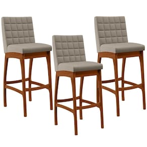 ndo muita excelência, o Kit 03 Banquetas Altas Para Cozinha Sala de Jantar Fixa Mila B04 Linho Bege - Lyam Decor é o complemento que faltava para deixar sua casa ainda mais extraordinária. Seu encosto com costura em padrão quadriculado e assento estofados, centralizam em si uma graciosidade estonteante, sem perder todo o seu conforto. A estrutura em madeira, na cor nozes, também é digna de notoriedade, por imprimir bastante personalidade a sua decoração. Vale ressaltar ainda, o apoio para os pés que garante maior segurança à mesma.