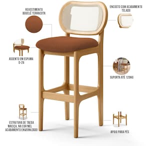 Amplamente sofisticada, a Banqueta Betta irá agregar ainda mais valor em sua decoração!! Sendo capaz de compor muito bem o ambiente, é produzida com materiais de excelente qualidade, a resistente estrutura em madeira de Taeda, na cor Mel, conta com apoio para os pés (que garante maior segurança), além do assento e encosto estofados super confortáveis e convidativos, que são revestidos em tecido Bouclê, extremamente elegante. Podendo ser disposta em bancada, cozinha americana, espaço gourmet ou home bar, as possibilidades de combinação são infinitas, o que a torna perfeita para receber família e amigos sempre de forma agradável e aconchegante, sem perder a sobriedade e requinte que possui. Você e seu lar merecem, adquira já a sua!!