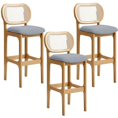 Kit 03 Banquetas Altas Para Cozinha Bancada Sala Tela Betta Fixa L02 Suede Cinza - Lyam