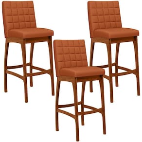 ndo muita excelência, o Kit 03 Banquetas Altas Para Cozinha Sala De Jantar Fixa Mila B04 Tecido Terracota - Lyam Decor é o complemento que faltava para deixar sua casa ainda mais extraordinária. Seu encosto com costura em padrão quadriculado e assento estofados, centralizam em si uma graciosidade estonteante, sem perder todo o conforto. A estrutura em madeira, na cor nozes, também é digna de notoriedade, por imprimir bastante personalidade a sua decoração. Vale ressaltar ainda, o apoio para os pés que garante maior à mesma. Pode ser acomodado em cozinha americana, ambientes integrados, espaços gourmets, bancadas ou em seu home bar, independente do lugar, desperta logo de cara bastante elegância e deixa tudo mais despojado, perfeita para criar um ambiente harmonioso e agradável para receber a família e amigos, quando favorável. Não perca tempo e adquira já a sua!!