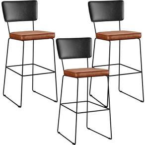 O espetáculo que é o Kit 03 Banquetas Altas Sala Jantar Fixa Allana L02 Couríssimo Preto Couríssimo Camel - Lyam Decor vem para agregar ainda mais valor na decoração da sua casa. Sua estrutura em aço remete-nos ao estilo industrial que surgiu em Nova York no século XX, já o assento e encosto estofados trazem equilíbrio e conforto criando a combinação perfeita para o ambiente.