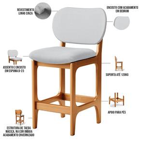 Amplamente sofisticada, o Kit 03 Banquetas Baixa Bar Cozinha Sala Jantar Betta L02 Imbuia Linho Cinza - Lyam Decor irá agregar ainda mais valor em sua decoração!! Sendo capaz de compor muito bem o ambiente, é produzida com materiais de excelente qualidade, a resistente estrutura em madeira de Taeda, na cor imbuia, conta com apoio para os pés (que garante maior segurança), além do assento e encosto estofados super confortáveis e convidativos, que são revestidos em tecido Couríssimo, composição extremamente elegante.