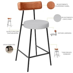 Amplamente moderna, dispondo de muito realce e design singular, o Kit 03 Banquetas Baixa Para Cozinha Sala De Jantar Bar Bancada Milão L02 Couríssimo Camel Linho Cinza - Lyam Decor vem com a personalidade e elegância que sua decoração merece! Estruturada em aço carbono, contrasta lindamente com o encosto e assento estofados, cabe mencionar ainda seu revestimento em Couríssimo, é confeccionada por materiais de excelente qualidade, extremamente resistentes e aconchegantes.