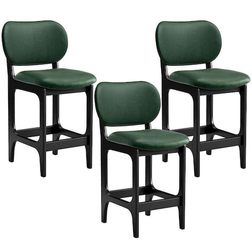 Amplamente sofisticada, o Kit 03 Banquetas Baixa Bar Cozinha Sala Jantar Betta L02 Facto Verde Musgo - Lyam Decor irá agregar ainda mais valor em sua decoração!! Sendo capaz de compor muito bem o ambiente, é produzida com materiais de excelente qualidade, a resistente estrutura em madeira de Taeda, na cor Preto, conta com apoio para os pés (que garante maior ), além do assento e encosto estofados super confortáveis e convidativos, que são revestidos em tecido Couríssimo, composição extremamente elegante.