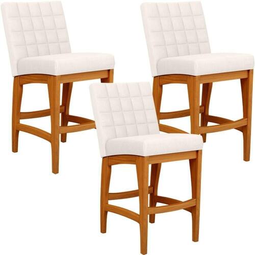 ndo muita excelência, o Kit 03 Banquetas Baixa Para Cozinha Bancada Bar Sala De Jantar 90 cm Fixa Mila L02 Linho Cru - Lyam Decor é o complemento que faltava para deixar sua casa ainda mais extraordinária. Seu encosto com costura em padrão quadriculado e assento estofados, centralizam em si uma graciosidade estonteante, sem perder todo o seu conforto. A estrutura em madeira, na cor nozes, também é digna de notoriedade, por imprimir bastante personalidade a sua decoração. Vale ressaltar ainda, o apoio para os pés que garante maior segurança à mesma.