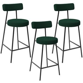 Amplamente moderna, dispondo de muito realce e design singular, o Kit 03 Banquetas Baixa Para Cozinha Sala De Jantar Bar Bancada Milão L02 Bouclê Verde - Lyam Decor vem com a personalidade e elegância que sua decoração merece! Estruturada em aço carbono, contrasta lindamente com o encosto e assento estofados, cabe mencionar ainda seu revestimento em Bouclê, é confeccionada por materiais de excelente qualidade, extremamente resistentes e aconchegantes.