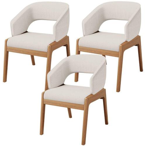 Kit 03 Cadeiras de Jantar e Estar Living Estofada Lince L02 Linho Cru - Lyam Decor - Off White