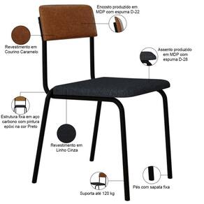 Model: Sense | Color: Caramelo | Firmeza: Firme | Cor do estofamento: CinzaCaramelo | Profundidade da cadeira: 51 cm | Profundidade do assento: 40 cm | Requer montagem: Não | Largura do assento: NA | Altura do assento a partir do solo: 47,5 cm | Peso máximo suportado: 120 kg | É dobrável: Não | Cor: Caramelo | É empilhável: Não | ColorSimple: Caramelo | ColorSupplier: Caramelo | Fabricante: Lyam Decor | ProductWarranty: 90 dias após o recebimento do produto | ProductHeight: 243 cm | Desenho do tecido: Liso | Material do estofamento: Aço, MDP, Linho e Couro sintético | Altura da cadeira: 81 cm | Largura da cadeira: 47,5 cm | Espessura do assento: na | ColorFamily: Caramelo | Tempo de montagem: na | Material: Estrutura em Aço e MDP, Revestimento em Linho e Couro sintético | MaterialFamily: Aço, MDP, Linho e Couro sintético | OriginCountry: Brasil | OriginState: PR | ProductContents: 03 Cadeiras | SizeDescription: Altura: 243 cm x Largura: 48 cm x Profundidade: 51 cm | SupplierSimpleName: Kit 03 Cadeiras Estofada Para Sala de Jantar Sense Preto C01 Linho Cinza Courino Caramelo - Lyam Dec | ProductLength: 51 cm | ProductWidth: 48 cm | ProductInstructions: Produto para uso em ambiente interno, nao devendo ficar exposto ao sol, calor e umidade excessivos. | ProductWeight: 16,7 Kg | Cor da estrutura da cadeira: Preto | Cor do assento: Cinza | É cadeira de balanço: Não