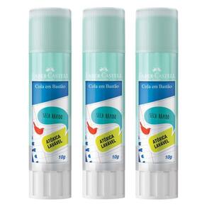 Kit 03 Colas Bastão 10g Colorida Azul Faber Castell