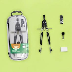 Além disso o Compasso Técnico Precision conta com uma embalagem rígida que serve de estojo para guardar seu kit e levá-lo para qualquer lugar.