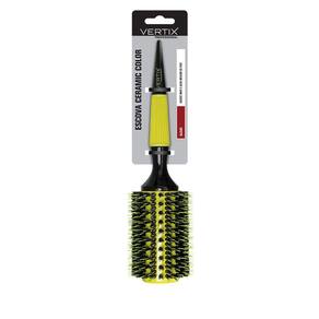 Cabo de madeira com borracha antiderrapante e formato pontiagudo para auxiliar na separação das mechas. Coleção - Ceramic Color Formato - Redonda Material das Cerdas - Natural Material do corpo - Madeira Tipo - Escova Função - Alisar Cor - Amarelo