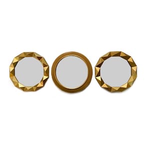 Transforme qualquer ambiente com o Kit de 3 Espelhos Decorativos que une sofisticação, modernidade e charme. Com molduras redondas em acabamento dourado metalizado, este conjunto é perfeito para salas, quartos, corredores e halls de entrada, proporcionando um toque elegante e versátil à decoração. As molduras combinam design geométrico facetado e liso, criando um efeito visual diferenciado. Leves e fáceis de instalar, podem ser dispostos juntos ou separados, permitindo múltiplas composições para personalizar suas paredes com estilo. Feitos com vidro de alta qualidade e moldura em polipropileno resistente, possuem acabamento em pintura dourada metalizada brilhante, garantindo durabilidade e beleza. Prontos para uso, os espelhos são de baixa complexidade de instalação, bastando parafusá-los na parede. Este kit é a escolha perfeita para quem busca decoração elegante, prática e versátil.
