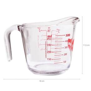 Kit 03 Jarras Medidoras de Vidro 500ml Marinex com Alça e Bico Direcionador. #Jarra de medição com bico direcionador #Copo medidor com alça ergonômica #Linha Nadir Figueiredo Marinex Garantia: 90 dias / Peso: 1,968g / Cores: Transparente e Vermelho / Ref: GD16225009X3 Dimensões de cada jarra: 16cm (C) x 11,5cm (L) x 11,5cm (A) Dimensões internas: 10,5cm (D) x 9,5cm (A) Capacidade individual: 500ml. Limpeza e Cuidados: - Lavar com água e sabão neutro utilizando esponja macia, seguido de pano seco; - Não utilizar produtos químicos ou abrasivos na limpeza; - Vai a lava-louças; - Evitar batidas. Detalhes Do Produto: - Resistente a variação de temperatura de até 180°C; - Possui alça ergonômica e bico direcionador; - Pode ser levada ao freezer e micro-ondas; - Possui medidas em OZ, Copos e ML; - Produto livre de BPA. Material: - Vidro Temperado: Alta resistência ao calor e à impactos. Não pega cheiro e não mancha. Atóxico, pode entrar em contato com alimentos; Com o conjunto de jarras medidoras 500ml de vidro sua rotina ficará ainda mais prática e suas receitas na medida certa, evitando desperdícios de alimentos. As jarras Marinex são produzidas em vidro temperado, assim possuem grande durabilidade e são de fácil limpeza. Os medidores possuem bico direcionador e alça ergonômica que facilitam o manuseio.