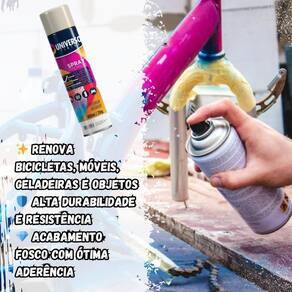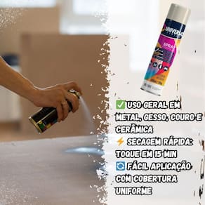 Tinta Spray 400ml Branco Fosco Uso Geral em Aço Ferro Couro Gesso Cerâmica A Tinta Spray 400ml Branco Fosco Uso Geral é a solução prática para renovar superfícies de metal, gesso, couro e cerâmica. Ideal para dar vida nova a bicicletas, móveis, eletrodomésticos e objetos em geral, garantindo um acabamento moderno e duradouro. Com fórmula de alta qualidade, oferece excelente aderência e acabamento fosco, além de resistência superior contra desgastes do dia a dia. Sua cobertura uniforme realça os detalhes e proporciona um resultado em poucas camadas. Prática e fácil de aplicar, a tinta spray seca ao toque em apenas 15 minutos, permitindo agilidade nos trabalhos e economia de tempo. O rendimento de até 2 m por demão garante maior aproveitamento do produto e ótimo custo-benefício. Diferenciais: Acabamento fosco com ótima aderência Alta durabilidade e resistência em ambientes internos e externos Secagem rápida e aplicação prática com cobertura uniforme Especificações TÉCNICAS: Volume: 400ml Rendimento: até 2 m por demão Superfícies indicadas: metal, gesso, couro e cerâmica Secagem: toque em 15 minutos Acabamento: fosco Recomendação: uso de primer para melhor desempenho Itens INCLUSOS: 03 Tintas Spray 400ml Branco Fosco Uso Geral Marca: Não Informado Ean: 7894141437855