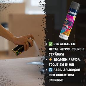 Tinta Spray 400ml Preto Brilhante Uso Geral em Aço Ferro Couro Gesso Cerâmica A Tinta Spray 400ml Preto Brilhante Uso Geral é a solução prática para renovar superfícies de metal, gesso, couro e cerâmica. Ideal para dar vida nova a bicicletas, móveis, eletrodomésticos e objetos em geral, garantindo um acabamento moderno e duradouro. Com fórmula de alta qualidade, oferece excelente aderência e acabamento Brilhante, além de resistência superior contra desgastes do dia a dia. Sua cobertura uniforme realça os detalhes e proporciona um resultado em poucas camadas. Prática e fácil de aplicar, a tinta spray seca ao toque em apenas 15 minutos, permitindo agilidade nos trabalhos e economia de tempo. O rendimento de até 2 m por demão garante maior aproveitamento do produto e ótimo custo-benefício. Diferenciais: Acabamento Brilhante com ótima aderência Alta durabilidade e resistência em ambientes internos e externos Secagem rápida e aplicação prática com cobertura uniforme Especificações TÉCNICAS: Volume: 400ml Rendimento: até 2 m por demão Superfícies indicadas: metal, gesso, couro e cerâmica Secagem: toque em 15 minutos Acabamento: Brilhante Recomendação: uso de primer para melhor desempenho Itens INCLUSOS: 03 Tintas Spray 400ml Preto Brilhante Uso Geral Marca: Não Informado Ean: 7894141438036