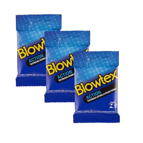Kit 03 Pacotes Preservativo Blowtex Action com 03 Unidades cada O preservativo Blowtex Action é texturizado para estimular o prazer feminino. São 100% lubrificados e testados eletronicamente proporcionando segurança e confiança dos produtos Blowtex.Além de agir como contraceptivo. também é um método muito importante e eficiente na prevenção às doenças sexualmente transmissíveis. O kit contém: 03 Pacotes Preservativo Blowtex Action 03 unidades (cada) *Compre Produtos Blowtex.