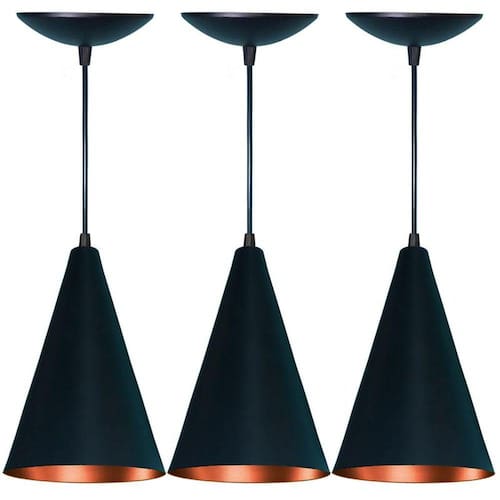 Anúncio referente ao kit de 3 luminárias.Luminária Pendente Cone, fabricada em alumínio, material altamente resistente ao tempo.Luminária composta por cabo PP com 1 metro de comprimento tamanho ajustável , soquete E27, canopla e cúpula em alumínio.Luminária ideal para ambientes internos, utilizada em salas de estar, cozinhas, salas de jantar, área gourmet entre outras.Ilumine e decore o seu lar com nossas lindas luminárias. Deixe a imaginação tomar conta.Lindo pendente para quem gosta de um ambiente com estilo e bem iluminado.Material Alumínio não enferruja Medidas 15 cm diâmetro x 25 cm altura mais 1.00 m de caboAltura aproximada montada de 1,25 m Altura AjustávelSoquete E27 aplicável com lâmpada comum ou LED Luminária Bivolt 127/220 v Não acompanha LâmpadaCor Externa Preto FoscoCor Interna CobreGarantia 3 meses de garantia contra defeitos de fabricação. Marca: Estillo & luz