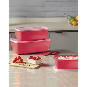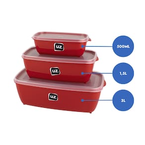 Kit 03 Potes Linha Color Retangular Multiuso Vermelho | UZ Utilidades