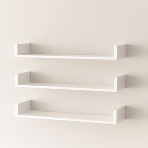 KIT com 03 prateleiras 100MDF 60cm Excelente opcao para armazenar livros e decoracoes em geral, proporcionando ao ambiente um toque de elegancia e organizacao. -Material 100MDF de 15mm, com bordas em fita de PVC -Suporte discreto que se torna imperceptivel quando em uso - Item ja vem montado -Acompanha kit de instalacao Descricao: Comprimento: 60cm Altura: 10cm Profundidade: 15cm Cor: Branco fosco Suporta ate 6kg por peca Itens inclusos: 03 Prateleira 60cm Buchas Parafusos Tapa furos