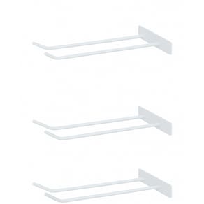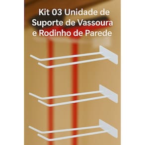 Kit 03 Unidades de Suporte de Parede Duplo de Vassoura e Rodinho em Ferro – 33x12x3cm - Branco
