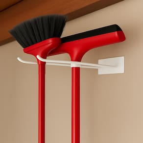 Organize sua lavanderia com praticidade e resistência. Este suporte de parede é ideal para manter vassouras, rodos e similares sempre à mão, otimizando o espaço com eficiência.
