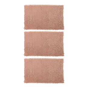 Kit 03 Tapetes De Banheiro Microfibra Bolinha 58X38Cm Rosê - Pink