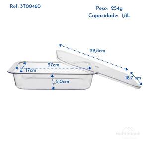 CONTEUDO 03 Travessa Retangular Cristal Transparente com Tampa 17 x 27cm
