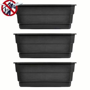 Kit 03 Vasos Floreiras Jardineiras Antidengue 60Cm PretaKit com 03 unidades da Jardineira Antidengue 60cm na cor Preta. Cada jardineira possui um prato que encaixa no vaso, evitando que o mosquito ponha sua larva na água.Produzida em material plástico com capacidade de 17,28 litros.Cor: PretaComprimento: 60cmBase inferior: 53cmAltura: 16cmLargura: 18cm Marca: Colibri Plásticos