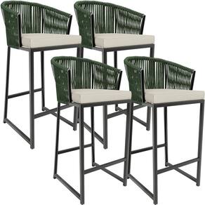 Kit 04 Banqueta Para área Gourmet Cozinha Varanda Corda Náutica Sunset D04 Verde - Lyam Decor