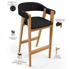 OriginState: PR | ProductHeight: 190 cm | Color: Preto | ColorFamily: Preto | ProductInstructions: Produto para uso em ambiente interno, nao devendo ficar exposto ao sol, calor e umidade excessivos. | ColorSimple: grafite | ColorSupplier: grafite | Material: Estrutura em Madeira, Revestimento em Linho e espuma | MaterialFamily: Madeira, linho e espuma | Model: Nadja | ProductLength: 53 cm | OriginCountry: Nacional | ProductContents: 04 Banquetas | ProductWarranty: 90 dias após o recebimento do produto | ProductWeight: 40 kg | ProductWidth: 52 cm | SupplierSimpleName: Kit 04 Banquetas Alta Bar Cozinha Sala de Jantar Bar Nadja L02 Linho grafite - Lyam Decor | SizeDescription: Altura: 190 cm x Largura: 52 cm x Profundidade: 53 cm