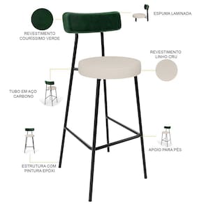 Amplamente moderna, dispondo de muito realce e design singular, o Kit 04 Banquetas Alta Bar Cozinha Sala De Jantar Aço Milão L02 Facto Verde Musgo Linho Cru - Lyam Decor vem com a personalidade e elegância que sua decoração merece! Estruturada em aço carbono, contrasta lindamente com o encosto e assento estofados, cabe mencionar ainda o revestimento do seu encosto em Couríssimo e do assento em Linho, é confeccionada por materiais de excelente qualidade, extremamente resistentes e aconchegantes.