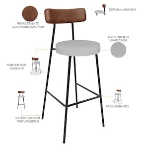Amplamente moderna, dispondo de muito realce e design singular, o Kit 04 Banquetas Alta Bar Cozinha Sala De Jantar Aço Milão L02 Couríssimo Marrom Linho Cinza - Lyam Decor vem com a personalidade e elegância que sua decoração merece! Estruturada em aço carbono, contrasta lindamente com o encosto e assento estofados, cabe mencionar ainda o revestimento do seu encosto em Couríssimo e do assento em Linho, é confeccionada por materiais de excelente qualidade, extremamente resistentes e aconchegantes.