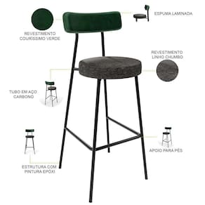 Amplamente moderna, dispondo de muito realce e design singular, o Kit 04 Banquetas Alta Bar Cozinha Sala De Jantar Aço Milão L02 Facto Verde Musgo Linho Chumbo - Lyam Decor vem com a personalidade e elegância que sua decoração merece! Estruturada em aço carbono, contrasta lindamente com o encosto e assento estofados, cabe mencionar ainda o revestimento do seu encosto em Couríssimo e do assento em Linho, é confeccionada por materiais de excelente qualidade, extremamente resistentes e aconchegantes.