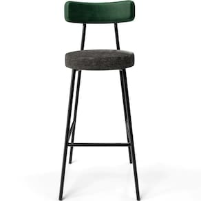 Revestimento do encosto em Facto na cor Verde Musgo e assento revestido em Linho na cor Chumbo, com acabamento semi brilho.