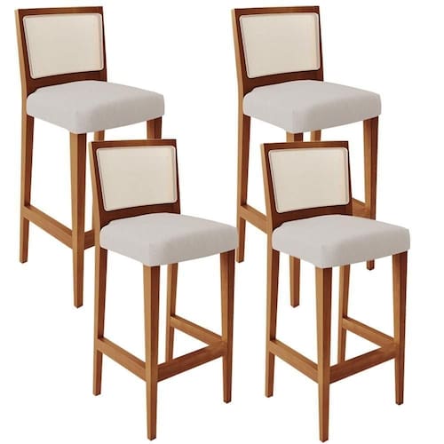 O Kit 04 Banquetas Alta Para Cozinha Sala de Jantar Fixa Telado Branco Zion L02 Linho Cru - Lyam Decor, possui um estilo rustico que faltava para deixar sua casa ainda mais clássica. Seu encosto com o detalhe de tela sintética na cor branca trazem ainda mais estilo e destaque para sua decoração, junto com assento estofado que proporciona horas de conforto. A estrutura e o apoio para os pés, são responsáveis por garantir maior segurança à mesma.