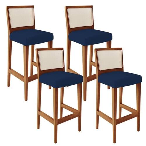 O Kit 04 Banquetas Alta Para Cozinha Sala de Jantar Fixa Telado Branco Zion L02 Suede Azul Marinho - Lyam Decor, possui um estilo rustico que faltava para deixar sua casa ainda mais clássica. Seu encosto com o detalhe de tela sintética na cor branca trazem ainda mais estilo e destaque para sua decoração, junto com assento estofado que proporciona de conforto. A estrutura e o apoio para os pés, são responsáveis por garantir maior segurança à mesma.