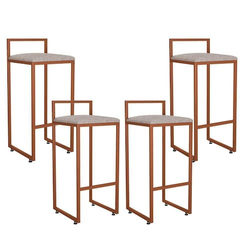 Kit 04 Banquetas Alta Para Cozinha Sala De Jantar Hanna L02 Bronze Linho Bege - Lyam Decor O seu sonho é ter uma cozinha integrada? Uma banqueta pode ser fator determinante para ajudar nesta tarefa, principalmente se você contar com o modelo Kit 04 Banquetas Alta Para Cozinha Sala de Jantar Hanna Bronze Linho Bege - Lyam Decor. Ideal para quem deseja montar uma cozinha americana ou agregar valor à sua área gourmet, o modelo possui design slim que é super apropriado para apartamentos ou para quem tem uma cozinha compacta. Outro ponto positivo é que este modelo não possui braços, sendo assim ocupa menos espaço e torna melhor para circulação. Ah, também possui apoio para os pés, elemento fundamental para a ergonomia e conforto. As opções de uso são infinitas, seja para um living, recepção, hall de entrada, sala de jantar, área gourmet ou ambiente corporativo. Para ter um espaço vital procure a distância mínima de 50 cm entre as banquetas. Desta forma a organização ficará harmônica e muito confortável para utilização. Dimensões do produto (A x L x P) 81 x 35 x 36 cm Altura do assento ao chão: 66 cm Características: Estrutura de Ferro com espessura de 20mm. Acabamento em pintura eletrostática cor Bronze. Estrutura do assento em Madeira de Eucalipto. Assento fixo com espuma certificada D-23. Revestimento Linho . Sapatas Niveladoras. Peso suportado: Até 150 kg. - Por se tratar de estofado as medidas podem ter uma pequena variação de até 3 cm. - A tonalidade do produto real poderá ter ligeira variação devido o lote de tecidos. Observações importantes: - Produto para uso residencial em ambiente interno, não devendo ficar exposto diretamente ao sol, calor e umidade excessivos. - Pode haver alguma diferença de tonalidade entre a imagem e o produto real, por conta do tratamento de imagens e a calibração de cores do seu monitor. - As imagens são meramente ilustrativas, não acompanham objetos de decoração e eletrônicos. - Ao receber a mercadoria, o cliente deve verificar as condições da embalagem, caso haja alguma não assine o de . - Montagem, desmontagem e outras instalações serão de responsabilidade do cliente. Não nos responsabilizamos, no ato da , por subir escadas/elevadores ou pelo por guincho em apartamentos. Eventuais despesas são de responsabilidade do comprador. - Confira as dimensões do produto e certifique-se de que passará normalmente por supostos elevadores, portas, escadas e/ou corredores de sua residência. Altura Montado: 81 | Largura Montado: 35 | Profundidade Montado: 36