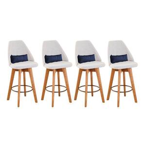 Kit 04 Banquetas Alta Maya Giratória Com Encosto Gourmet Linho Bege E Almofada Corino Azul Marinho - Aurora Line