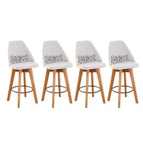 Kit 04 Banquetas Alta Maya Giratória Com Encosto Gourmet Linho Bege E Almofada Flores - Aurora Line