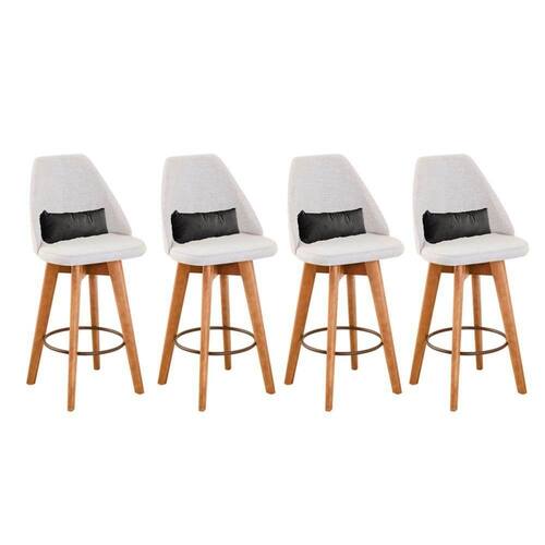 Kit 04 Banquetas Alta Maya Giratória Com Encosto Gourmet Linho Bege E Almofada Suede Cinza - Aurora Line Banqueta Maya Giratória - Aurora Line A Banqueta Maya possui assento e pés em madeira eucalipto com sistema giratório! Os pés contam com um reforço que proporciona um suporte de peso de até 120 Kgs.O assento é revestido com espuma D-23. Além de bonita e charmosa, vai trazer para seu ambiente elegância e proporcionará conforto para sua família e amigos nos momentos de lazer.