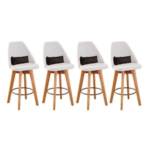 Kit 04 Banquetas Alta Maya Giratória Com Encosto Linho Bege Claro E Almofada Suede Marrom - Aurora Line
