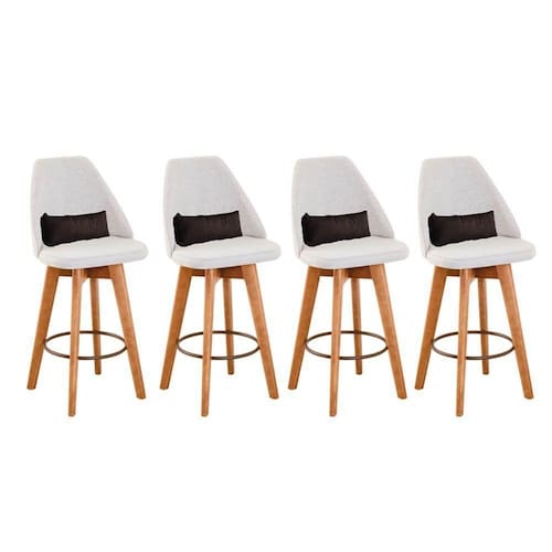 Kit 04 Banquetas Alta Maya Giratória Com Encosto Linho Bege Claro e Almofada Suede Marrom - Aurora Line - Blush