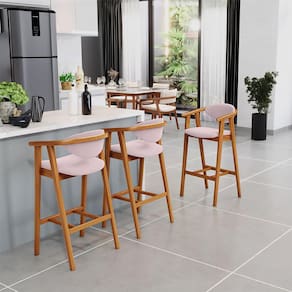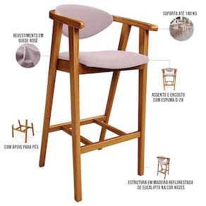 A melhor escolha para os momentos de confraternização no aconchego da sua casa, acaba de chegar! O Kit 04 Banquetas Alta Para Cozinha Bancada Bar Sala de Jantar Fixa Cecília L02 Suede Rosê - Lyam vem com a personalidade e elegância que sua decoração merece! É ideal desde refeições rápidas, até um Happy Hour com os amigos, família. Seu design único valoriza o ambiente, sem deixar pra trás a beleza e qualidade! Para deixar a sua área gourmet mais aconchegante, ela possui assento e encosto estofados, confeccionados com materiais de excelente qualidade, e extremamente resistentes.