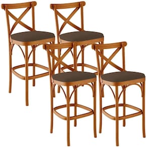 Kit 04 Banquetas Altas Cozinha Bancada Bar Sala De Jantar Estofada ávila L02 Suede Marrom - Lyam