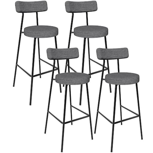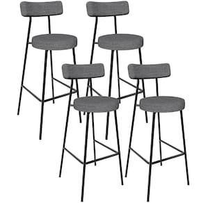 Kit 04 Banquetas Altas Bar Cozinha Sala De Jantar Em Aço Milão L02 Linho Cinza Escuro - Lyam Decor