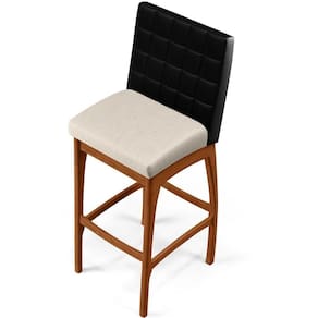 ndo muita excelência, o Kit 04 Banquetas Altas Cozinha Sala De Jantar Fixa Mila B04 Couríssimo Preto Linho Cru - Lyam Decor é o complemento que faltava para deixar sua casa ainda mais extraordinária. Seu encosto com costura em padrão quadriculado e assento estofados, centralizam em si uma graciosidade estonteante, sem perder todo o conforto. A estrutura em madeira, na cor nozes, também é digna de notoriedade, por imprimir bastante personalidade a sua decoração. Vale ressaltar ainda, o apoio para os pés que garante maior à banqueta.